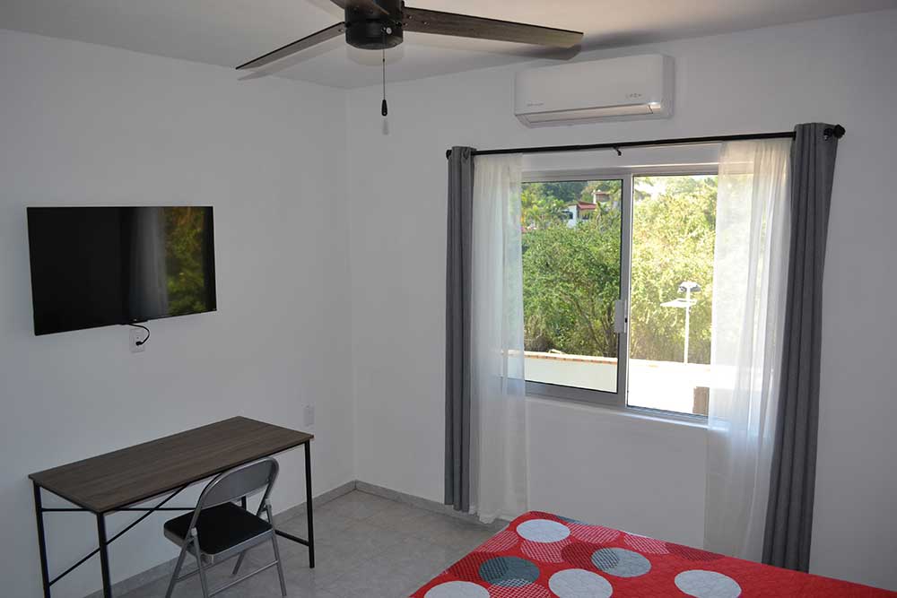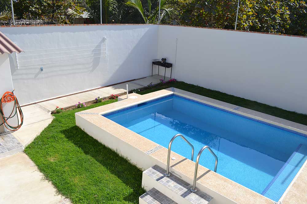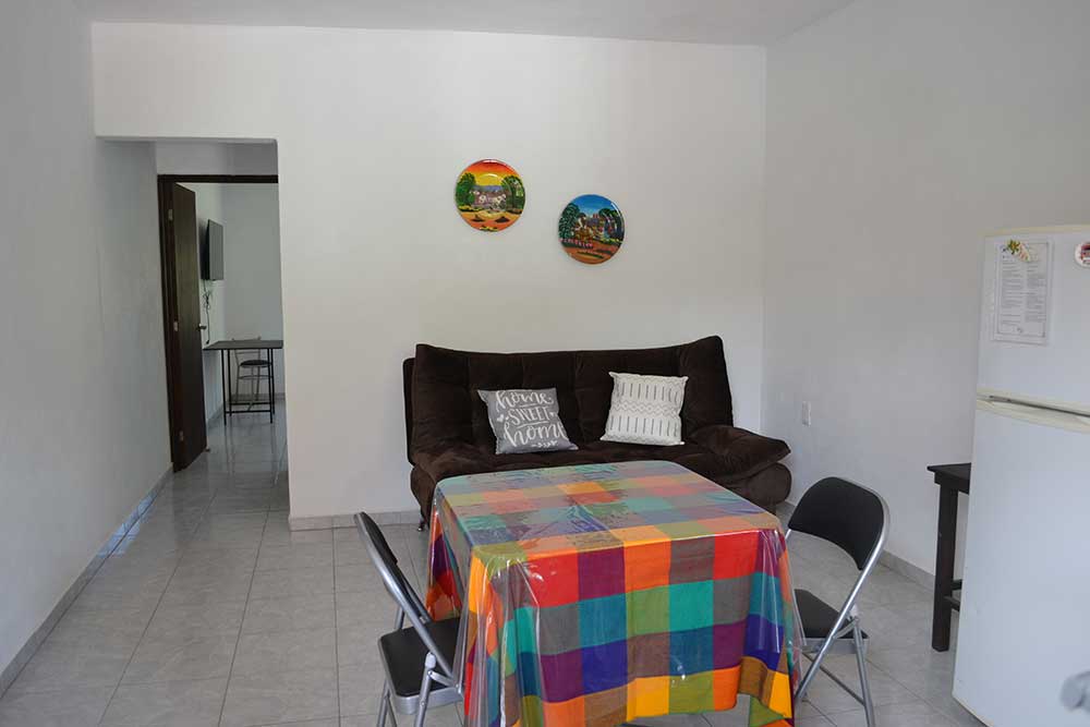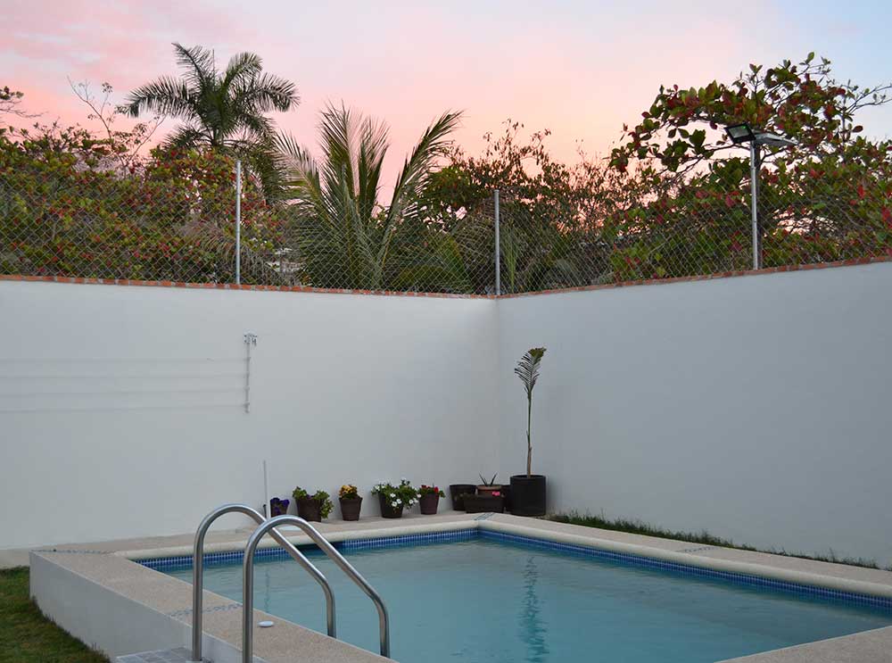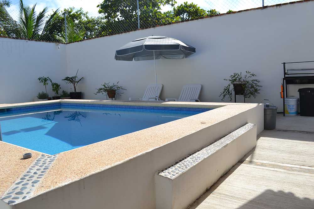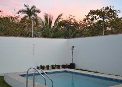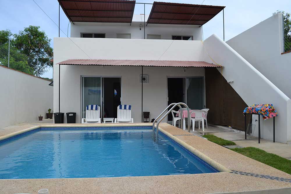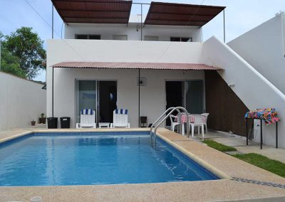Apartments in the south end of Rincon de Guayabitos, Nayarit, a quiet area with great green scenery, 6 blocks from the sea (beach side of town) and 4 blocks to the main avenue, private pool, and terrace, only 2 apartments on the property. Long-term availability.